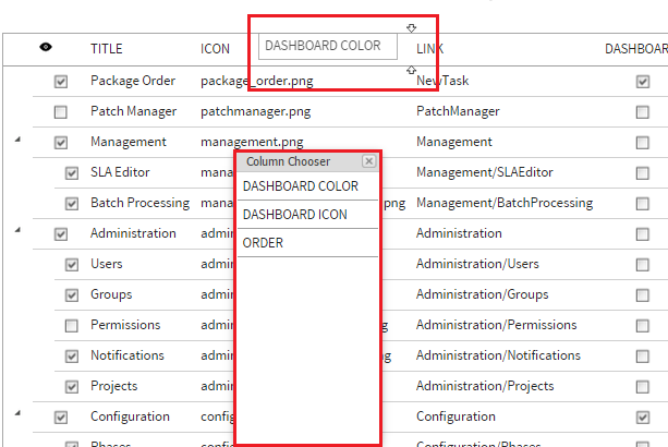 The Column Chooser control can be accessed by clicking on the Column Chooser control icon.
