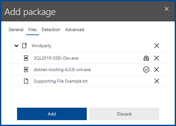 << Click to Display Table of Contents >> RayManageSoft Unified Endpoint Manager > 3.1 u2 > User Guide > Applications > Add a Package > Add a Third Party Installer Package Files |