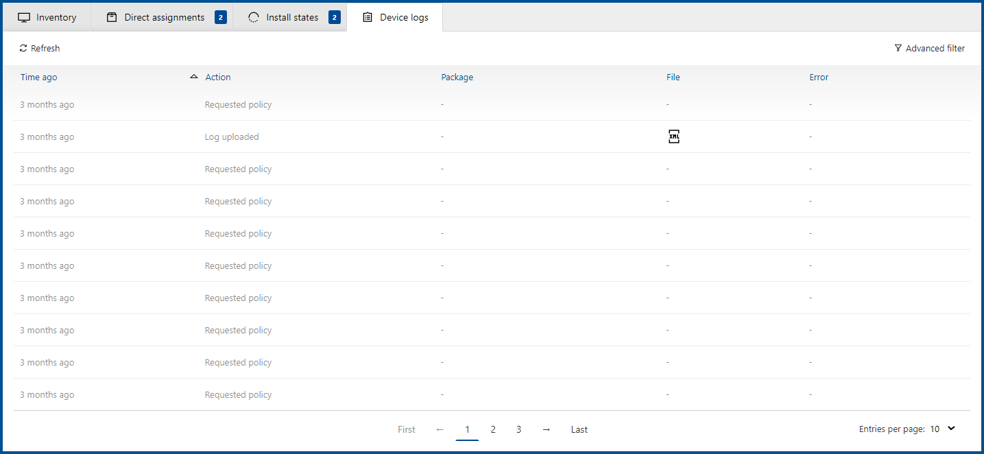 Entries containing more specific log files are marked in the File column. When clicking on the specific entry, the detailed log will be shown.
