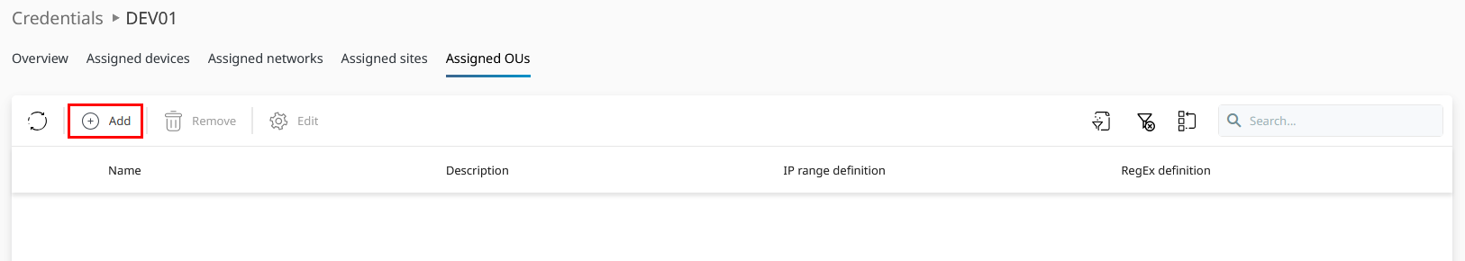 3.Under Assigned OUs, click on Add to open the Add credential assignment wizard.