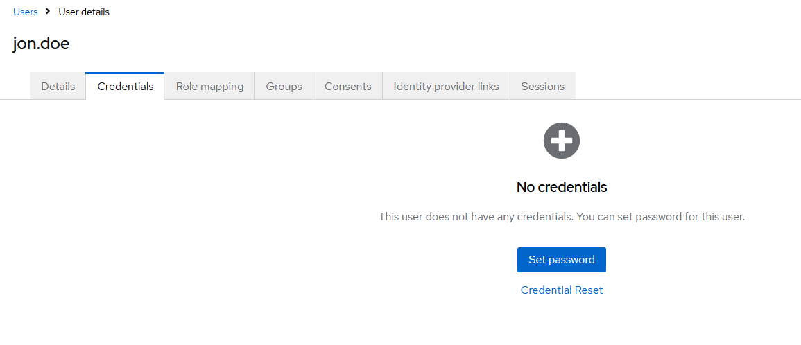 6.Click on the Credentials tab to open the view where can assign a password to the new user.