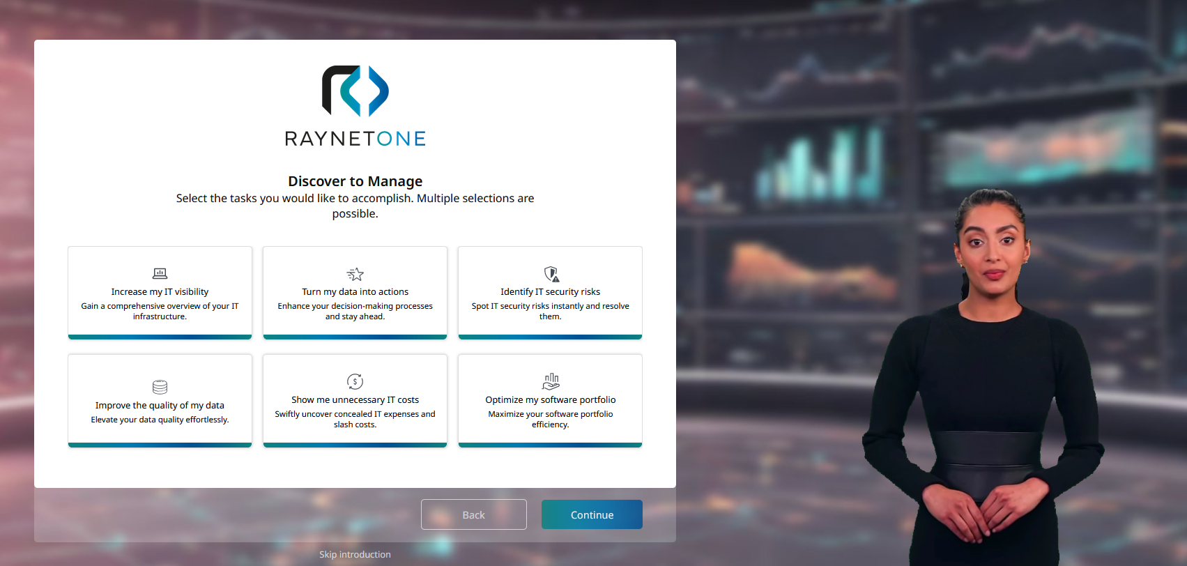 Starting your journey in the self-service portal is especially recommended to first-time users of Raynet One and other Raynet products. In case you are already familiar with the platform and do not need any assistance, you can skip the self-service portal and directly move on to the platform.
