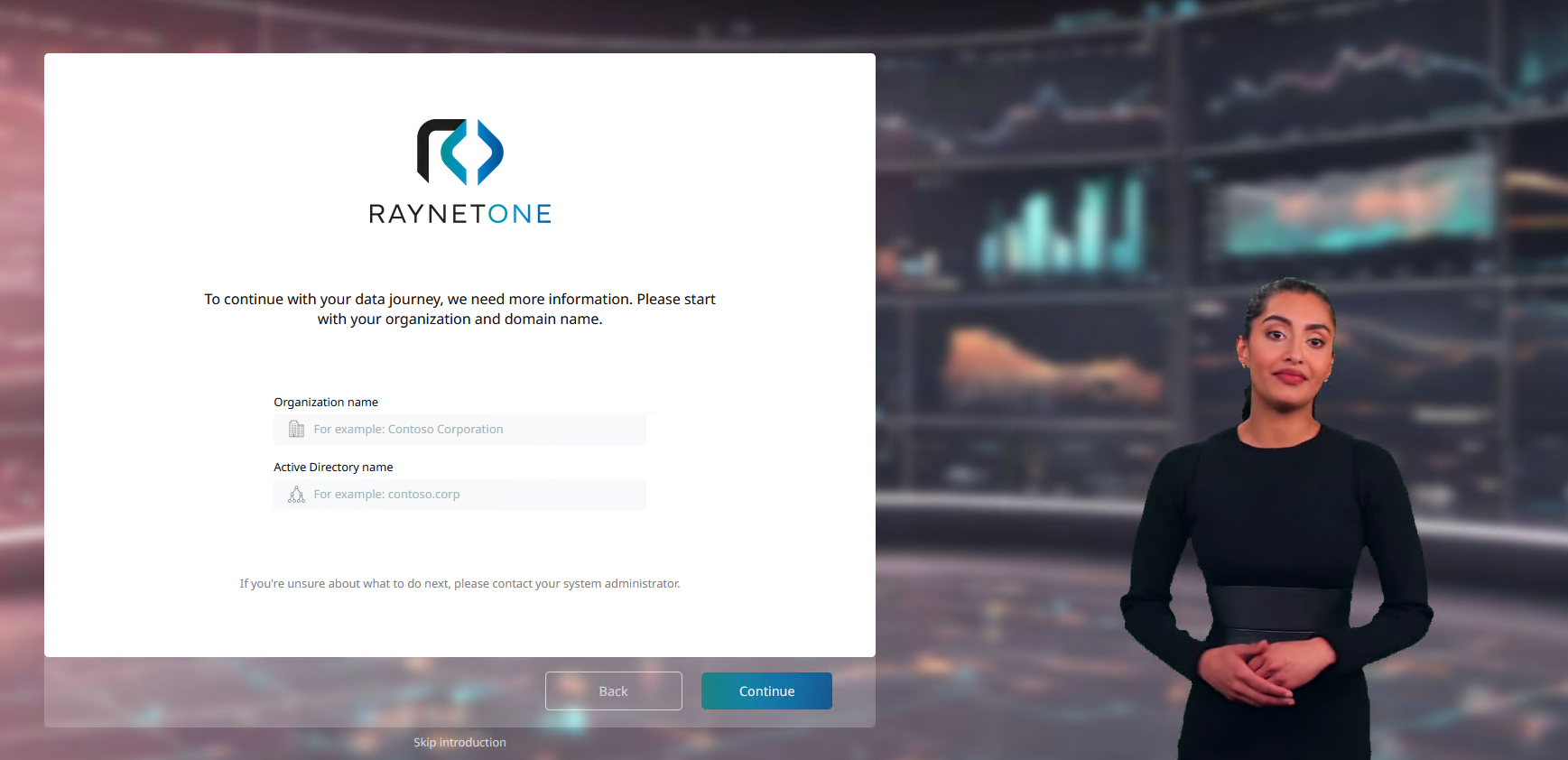 Input form for your organization's name and the domain name of the AD controller.