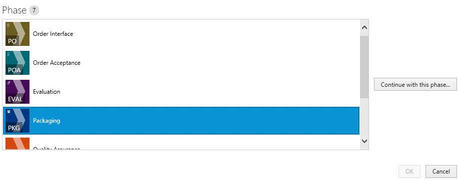 7.Click Continue with this phase... to proceed to the task selection with the currently selected phase. Press Cancel to go back to the backstage menu.