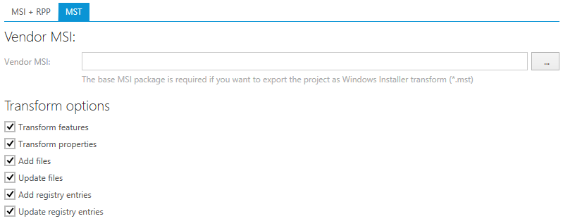 The sources stored within the .rcp file will be compared to the base MSI defined here. The MSI is used to determine the delta for the transform generation.