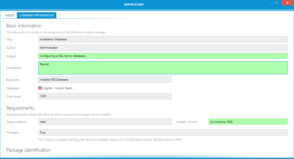 Once a project is opened (MSI or RPP) it is possible to compare it against any other MSI file, for example to understand differences between two different package versions.