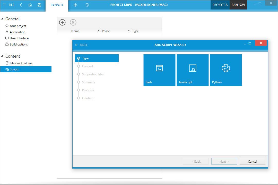 << Click to Display Table of Contents >> RayPack > 7.3 u2 > User Guide > PackDesigner > MacOS Projects Scripts |