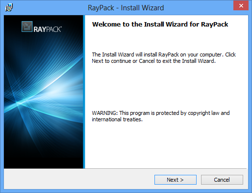 Launch the RayPack setup with a double-click on the MSI file and wait for the Welcome Screen to be prepared.