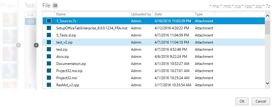 oThe type column represents the source from which the file can be accessed. Possible values are Attachment (file has been physically uploaded to RayFlow) and Link (the package is available on a shared location and only the path to the root file is saved in RayFlow).