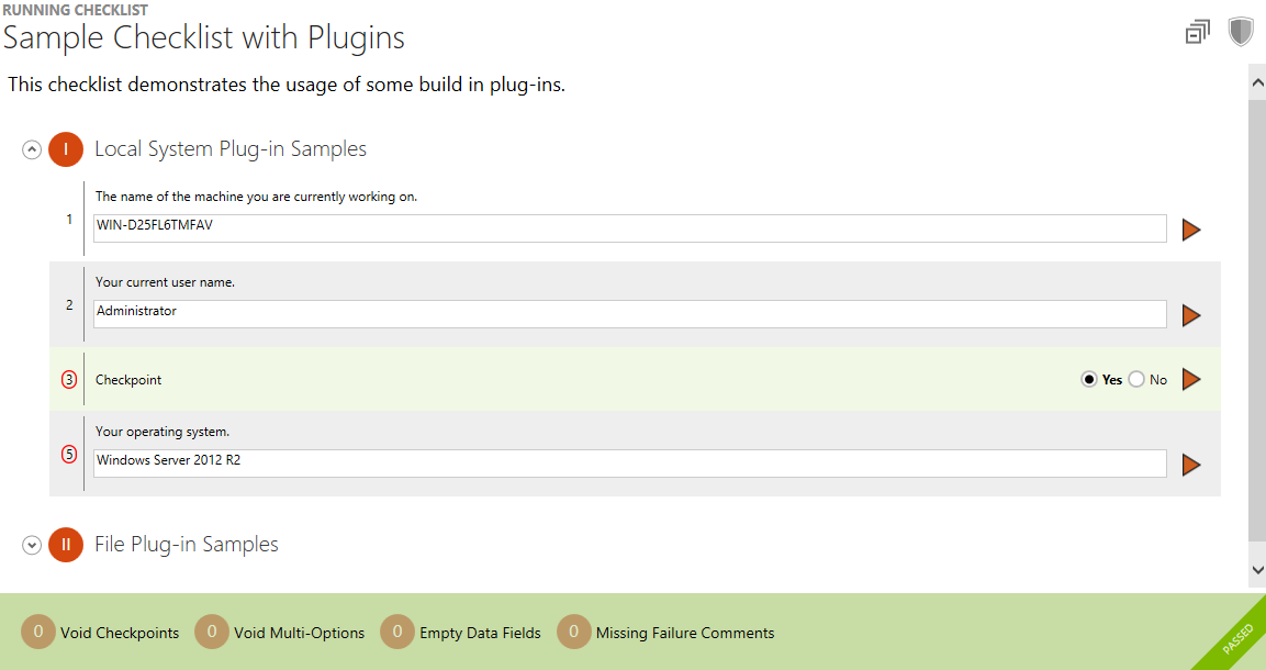 However, there may be circumstances that lead to checklists that seem to have broken numberings when they are viewed or evaluated via the Checklist Viewer interface. If evaluators complain about this fact, checklist authors do not have to consider this a bug, but simply open the project with the Checklist Editor interface. If the missing index values belong to items that have an active condition option, their index value is missing in the Checklist Viewer by design.