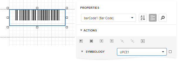 << Click to Display Table of Contents >> RayVentory Data Hub > 12.6 u1 > Dashboards and Reports Customization Guide > Designing Reports > Use Report Elements > Use Barcodes UPC-E1 |