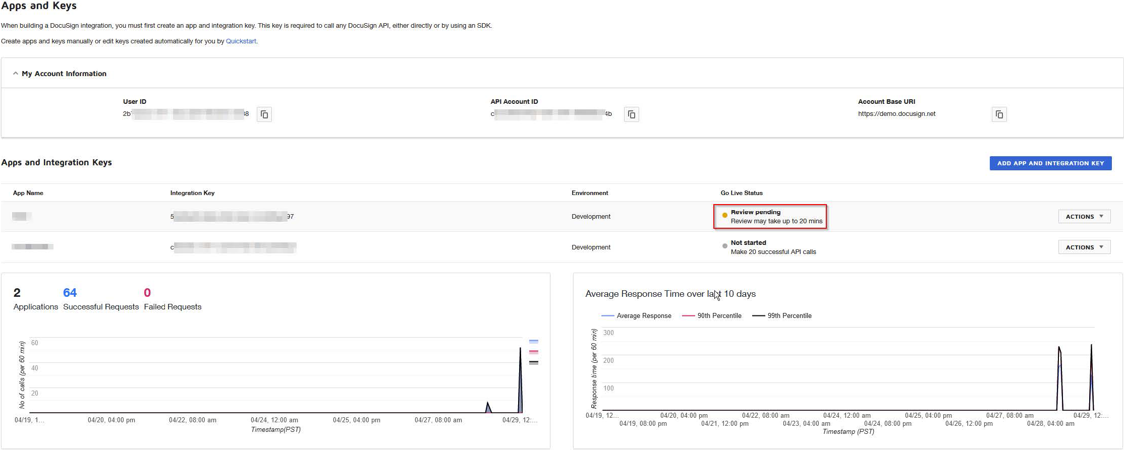 In the DocuSign Portal the Go Live Status shows if the 20 API calls are made or if not, how many calls are missing.