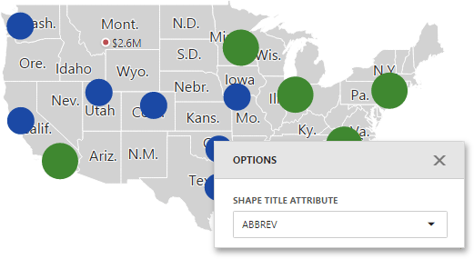 Geo Point maps provide the capability to display titles within map shapes and allow you to add supplementary content to the callout/bubble/pie tooltips.