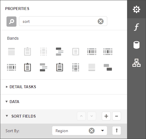 4.Switch back to DESIGN, select the Detail band, and type in "hier" in the Search field to navigate to the Hierarchy Print Options property pane.